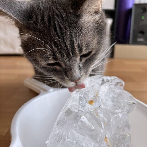 暑い日が続く夏は、「愛猫に冷たいものを食べさせてあげたい」と思う飼い主さんも少なくないでしょう。この記事では、猫に氷や液状おやつを凍らせたものを与えても問題ないか、与える際の注意点について、獣医師が解説します。