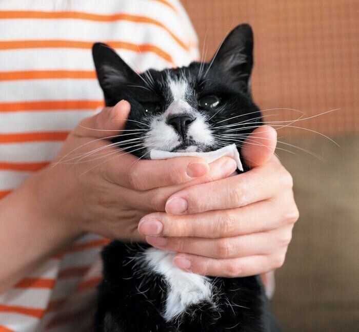 目もと・耳の中・あごの下など、愛猫の顔まわりが汚れていたとき、正しい方法でケアできていますか? デリケートな猫の体のお手入れには、肌触りのよい「カット綿」が役立ちます。今回は、カット綿を使った顔まわりのお手入れ方法をご紹介します。