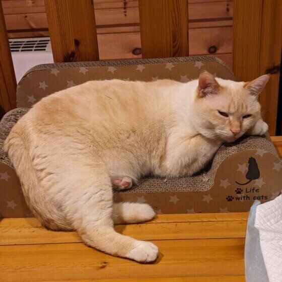 @tomeji1106さんは6匹の猫の飼い主さん。そのなかのしめじちゃんが眠っている姿を見て、爪とぎ器の1か所だけが深く削れている謎が解けたといいます。今回は、爪とぎ器の同じ場所を削ってしまう猫の気持ちについて、獣医師に聞きました。
