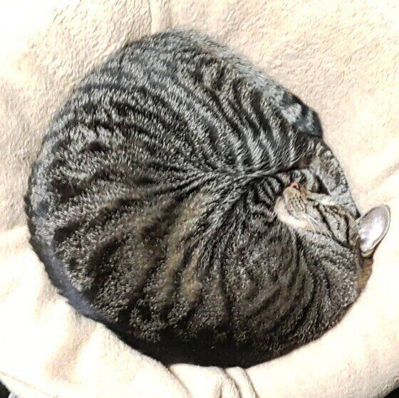 「アンモニャイト」に「猫団子」 寒い季節によくみられる猫の寝姿に癒される