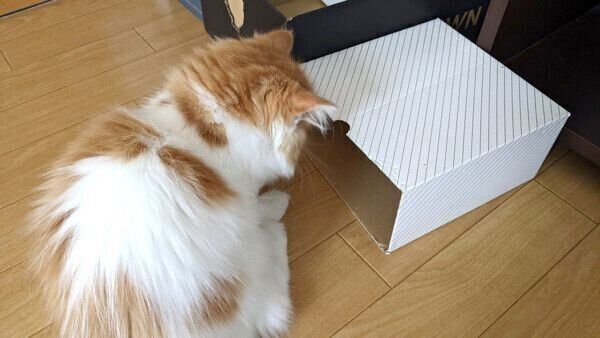 おニューの箱は“くんくん”せざるをえない! 猫はやっぱり箱が気になっちゃう。