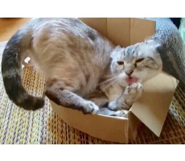 猫は「箱」が大好き! Twitterユーザー@happy29718637さんの愛猫・幸ちゃんもお気に入りの箱があるそうなのですが…クセがありすぎな入り方をすることもあるようです。