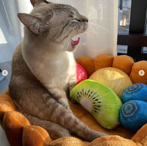 今回は、フェリシモ猫部で現在販売されている『フルーツタルトの具になってスヤァ スイーツにゃんこクッション』で、気持ちよさそうに寝ている猫の姿をご紹介。何度も写真を撮ってしまう、愛らしい寝姿をご覧ください!