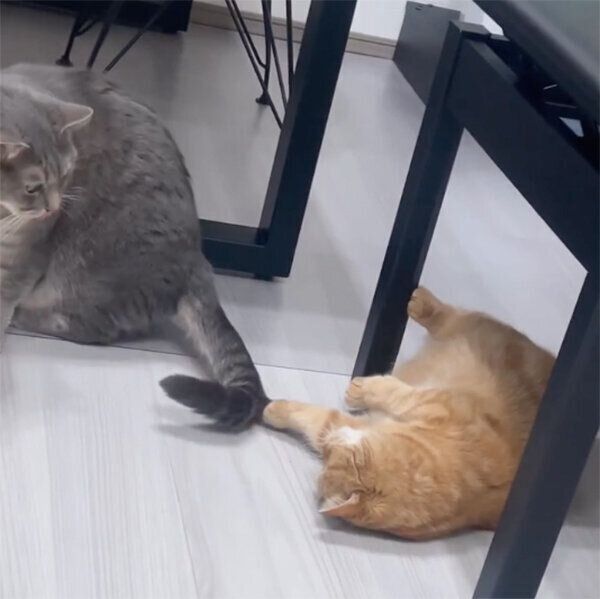 ちょっかいを出してきた猫に怒るかと思いきや、可愛いツッコミ!? ほかのコの「しっぽ」で遊ぶ猫の心理とは