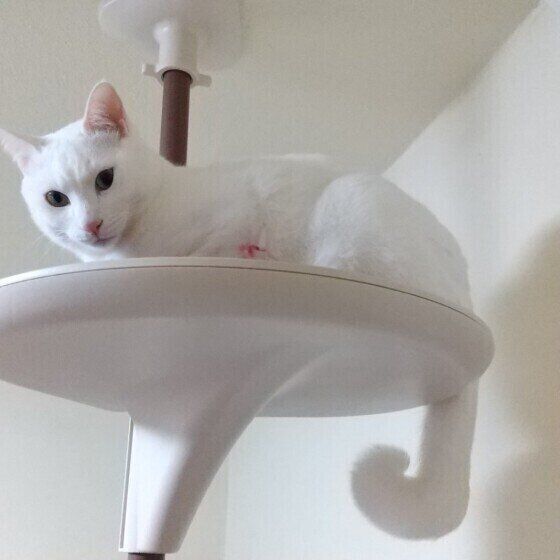 Twitterユーザー@omochiomochingさんの愛猫・おもちちゃん。キャットタワーでなにやら「フシギな体勢」をしていますよね。じつはこのとき、おもちちゃんは自分のしっぽを追いかけて遊んでいたのだとか! おもちちゃんが思いついた、おもしろ可愛い遊びを紹介します!