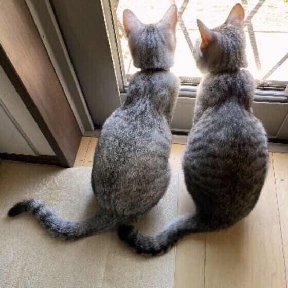 「このしっぽ一生見ていたい」窓の外を眺めるモフモフの猫たちに約1.1万いいねが集まり話題に