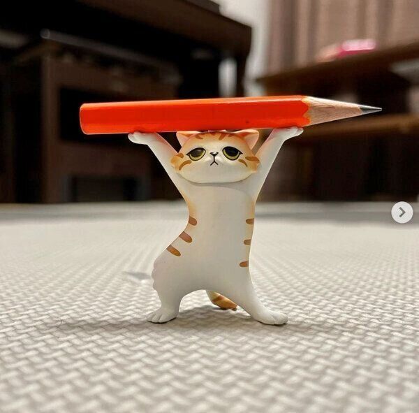 可愛いポーズに癒される! 何を乗せても楽しいカプセルトイ「ネコのペンおき」にハマる人続出