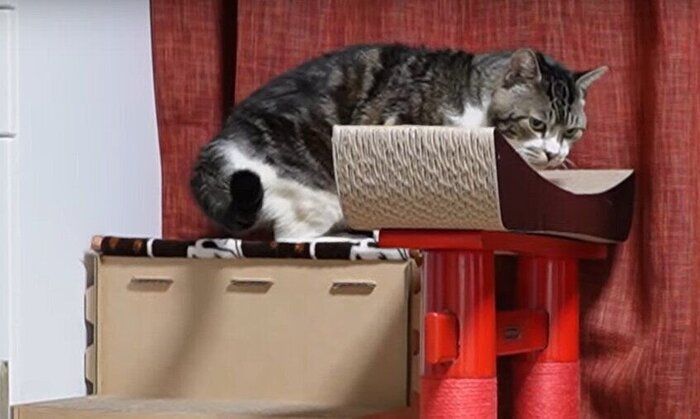 新しい爪みがきを堪能する猫♡ パワフルな爪とぎ&後ろ足ケリケリで喜びを表現!
