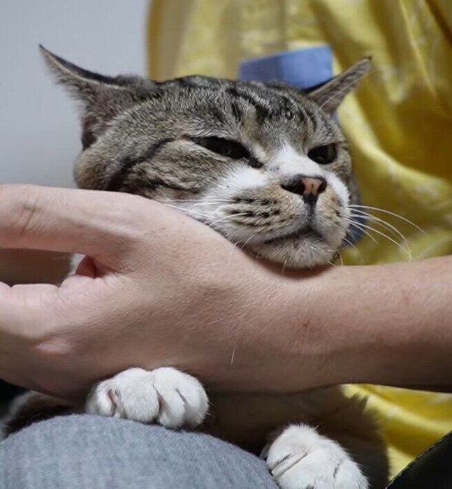 完全に脱力モード? 大好きなパパさんにマッサージしてもらってうっとりしちゃう猫♡