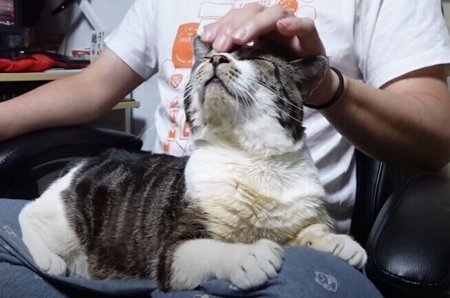 猫のリキちゃんはパパさんのことが大好きです♡ 今日も定位置である膝の上を占領していると、パパさんから特別マッサージ!コロコロマッサージに気持ちよくなり、とろけるような表情を見せるリキちゃんのかわいい動画です♪