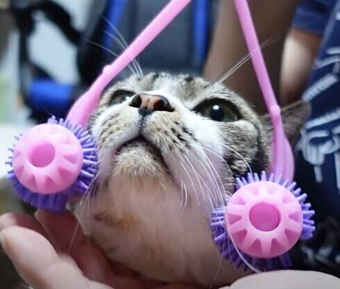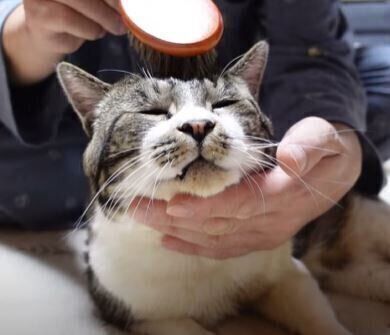 大好きなパパさんからのコロコロマッサージ! 今にもとろけそうな表情を見せる猫♡