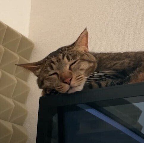 飼い主さんのお仕事中、パソコンの上で眠っている猫のこぱん君。退いてもらおうと、飼い主さんが肉球を触ってみても、そこから離れる気は全くないようです! すっかり気に入ってしまった場所でマイペースにくつろぐこぱん君の動画です。