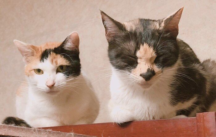 紹介するのは、X(旧Twitter)ユーザー@sabinekonyansさんが「お手々ないないとあるある」と投稿していた、こちらの写真。ソファの上でくつろぐ2匹の愛猫・めいちゃん、よもぎちゃんが写っています。堂々と前足を見せる「おててあるある」ポーズをするめいちゃん、前足を隠す「おててないない」ポーズをするよもぎちゃん。可愛らしい2匹について、飼い主さんに話を聞きました。