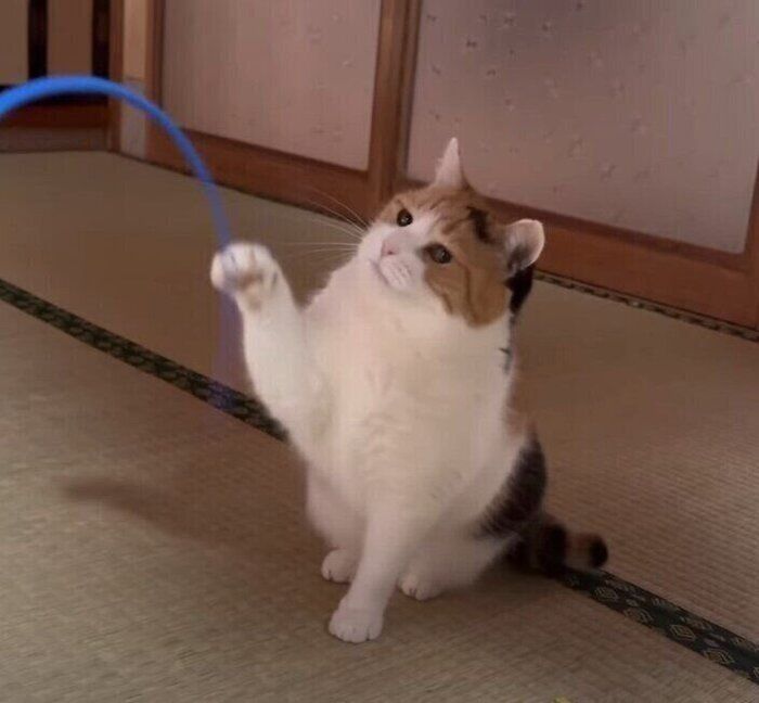 三毛猫のミレちゃんはお気に入りのタワーでのんびり。飼い主さんと遊ぶときもまったりモードです♪飼い主さん曰く、ミレちゃんは・・・「手より先に口が出ちゃう系女子」なんだそう(笑)その穏やかな時間に、なんだかほっこりしちゃう動画です♡
