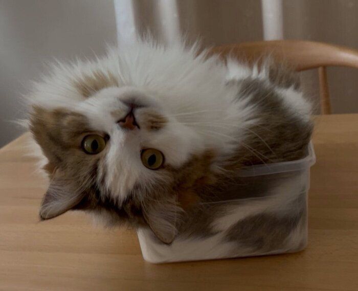 紹介するのは、X(旧Twitter)ユーザー@azukichi_komugiさんが「たぶん四つ足全部真ん中に集中してる」と投稿していた写真。透明の四角い箱にギュッと詰まっている愛猫・こむぎくん(撮影時3才/スコティッシュフォールド)が写っています。こむぎくんの体は一体どうなっているのか……。猫の体の柔らかさに驚くようなこむぎくんの姿をご覧ください。