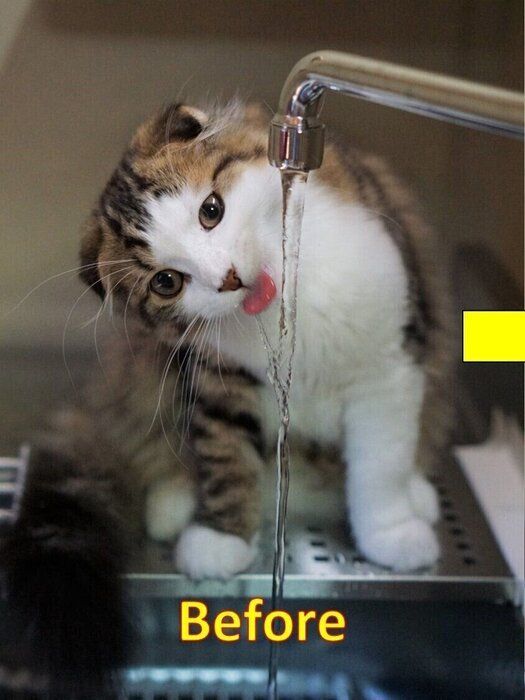 水を蛇口から直飲みする生後4カ月の子猫→9才になっても、まったく同じ体勢で水を飲む姿にほっこり!