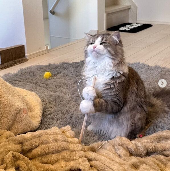 @puuron__さんの愛猫・ぷーあるくんが猫じゃらしで遊ぶ姿に注目が集まりました。ファンタジーの世界に入り込んだようなぷーあるくん遊び姿とは。飼い主さんによると、偶然撮れた奇跡の一枚だったようです。