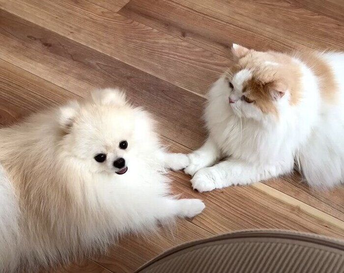 仲よしなもふもふ猫&もふもふ犬 毎日手をつないで過ごす時間が尊すぎると話題に