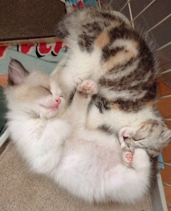 悲しみの中にいた飼い主の前で熟睡する2匹の子猫 無垢な寝顔に「心から癒された」
