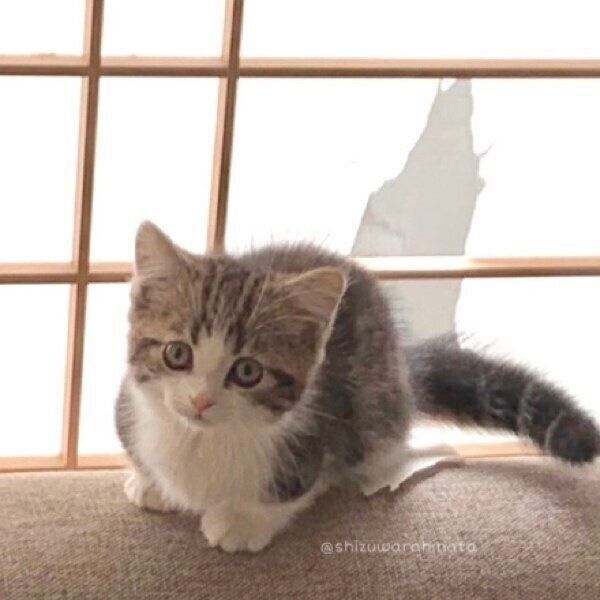 障子にぽっかり穴をあけた“やんちゃ”な子猫→半年後、同じ場所で見せた「誇らしげな顔」にキュン!