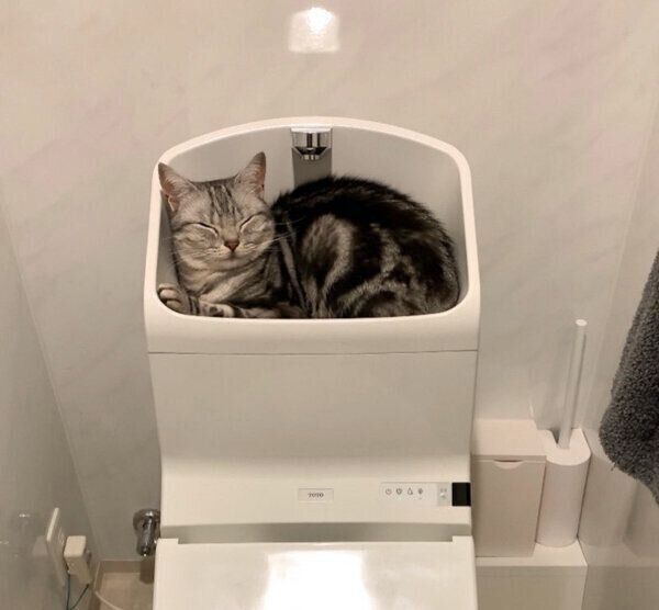 紹介するのは、X(旧Twitter)ユーザー@cat_anko3さんが「猫ってほんとどこでも寝る…」と投稿していたこちらの写真。そこには、トイレのタンクの手洗器の部分にジャストフィットして眠る愛猫・あんこくん(撮影時4才/アメリカンショートヘア)の姿が写っていました。「なぜそこで…」と思わずツッコミたくなるあんこくんの姿をご覧ください。