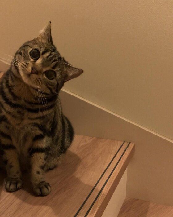 階段で家族を“待ち伏せ”する猫が「かわいすぎる」と話題に 首を傾げる姿にキュン♡
