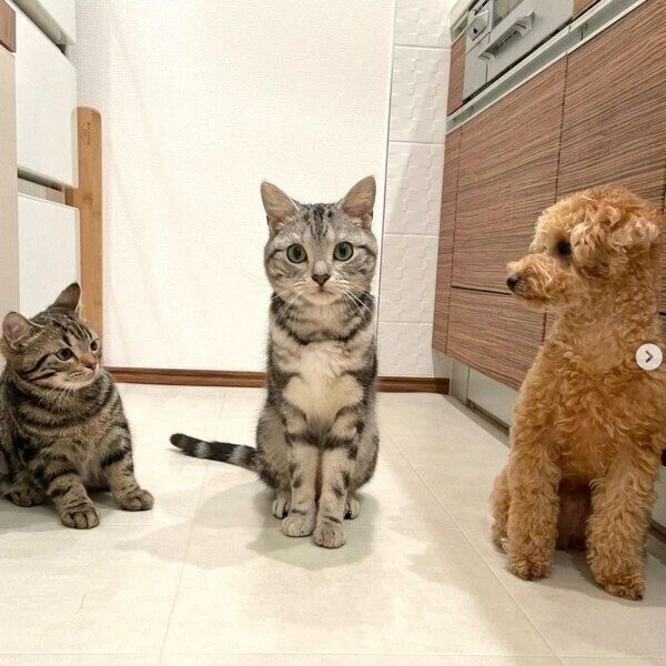 今回紹介するのは、Instagramユーザー@aloha_catlifeさんの愛猫・アロハくん、マハロくん、愛犬・アネラくん。キッチンで一列に並んだ様子は、まさに奇跡の瞬間? 愛猫と愛犬の性格、元気で楽しそうに過ごしている日々の暮らしについて、飼い主さんに詳しいお話をうかがいました。