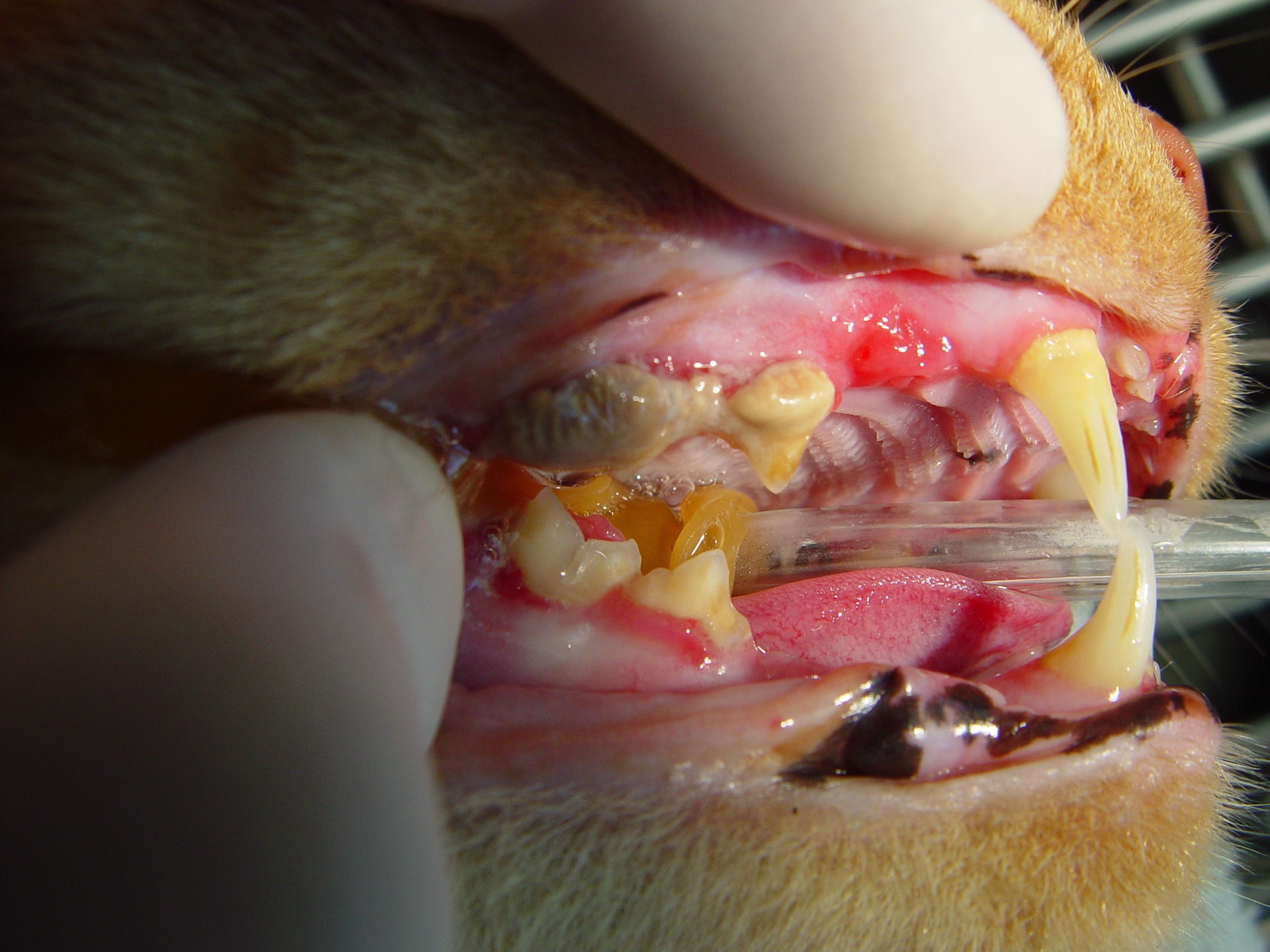 初期症状として、フードを口に入れることを嫌がる、よだれが増える、口臭がきつくなるなどがあり、歯周病の初期症状とよく似ています。