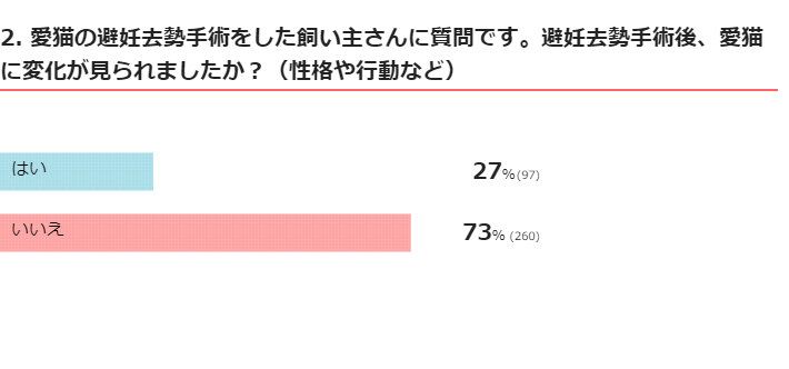 「手術によって、あくまでホルモンバランスの変化が起こるだけです。それが猫の性格や行動など目に見える変化として出るかどうかは、また別の話になる、ということでしょう」