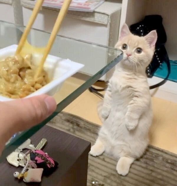 今回紹介したむぎくんは、飼い主さんも言うように納豆に興味を示してマンチカン立ちしたのかもしれませんね」