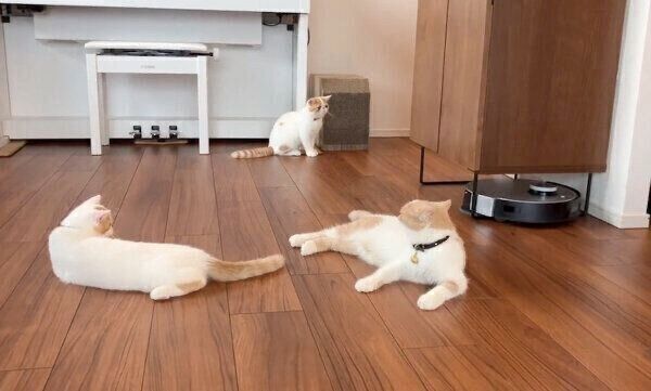 3匹は、ロボット掃除機が近くにやってきても動じない様子を見せていましたが、ほかにも…