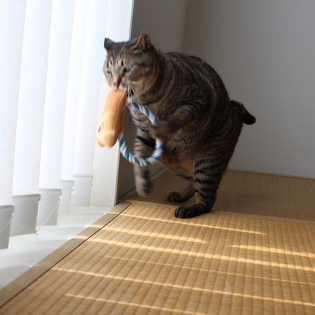 おもちゃで遊ぶのが大好きな愛猫ですが、やんちゃ系暴れん坊男子のため、すぐ壊してしまうのが難点。値段のはるおもちゃを買い与えても、翌朝には原型をとどめていないことも…。