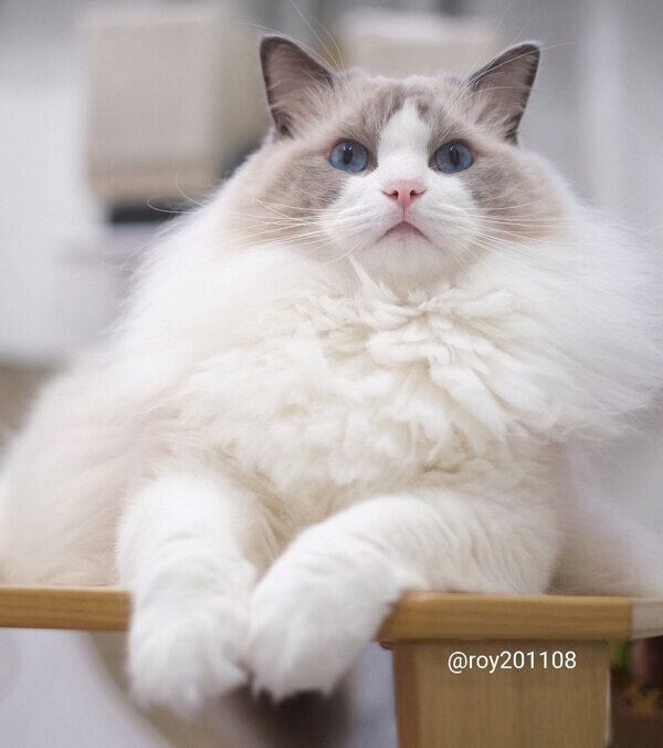 こちらの写真は、今年の10月に撮影したもの。飼い主さんに話を聞くと、テーブルに座っているロイちゃんの写真を撮ったときに、ロイちゃんの毛がモフモフの冬毛になっていたことに気がついたのだそうです。