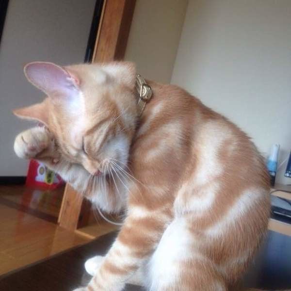 しっぽの部分も意外と抜け毛があります。長毛の猫にはスリッカーブラシ、短毛の猫にはラバーブラシを使って、付け根から先端にかけて一気にとかします。短毛の猫のブラッシングはこれで終了です。