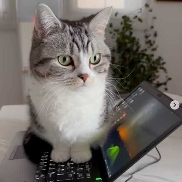 圧がスゴい! パソコンの上に座って仕事中の飼い主を見つめる猫の心理とは?