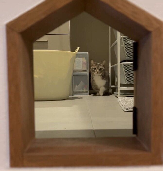 「猫トンネルから突進したあと、おもちはジャンプをして驚かしてきます。猫トンネルの奥に逃げると飼い主は通れないですし、壁でいい感じに隠れられるので、“驚かすには最適な穴”として猫トンネルを気に入っているんだと思います」