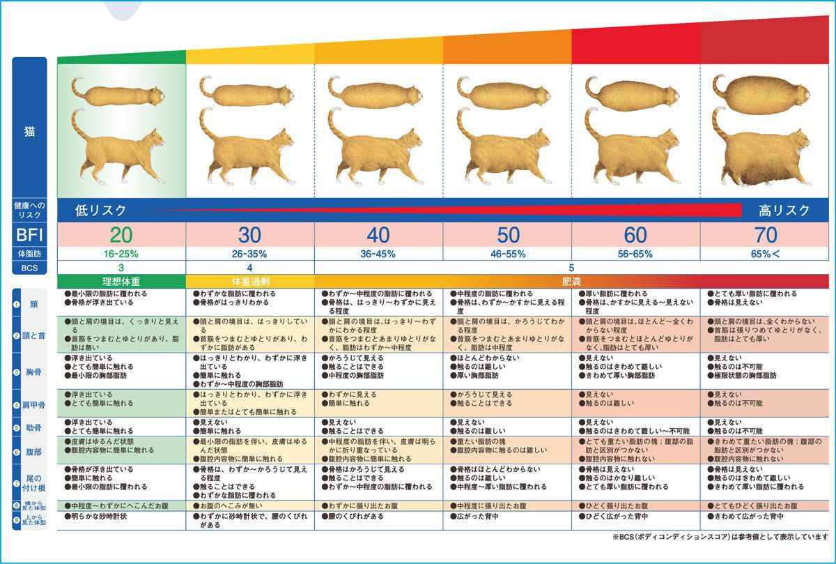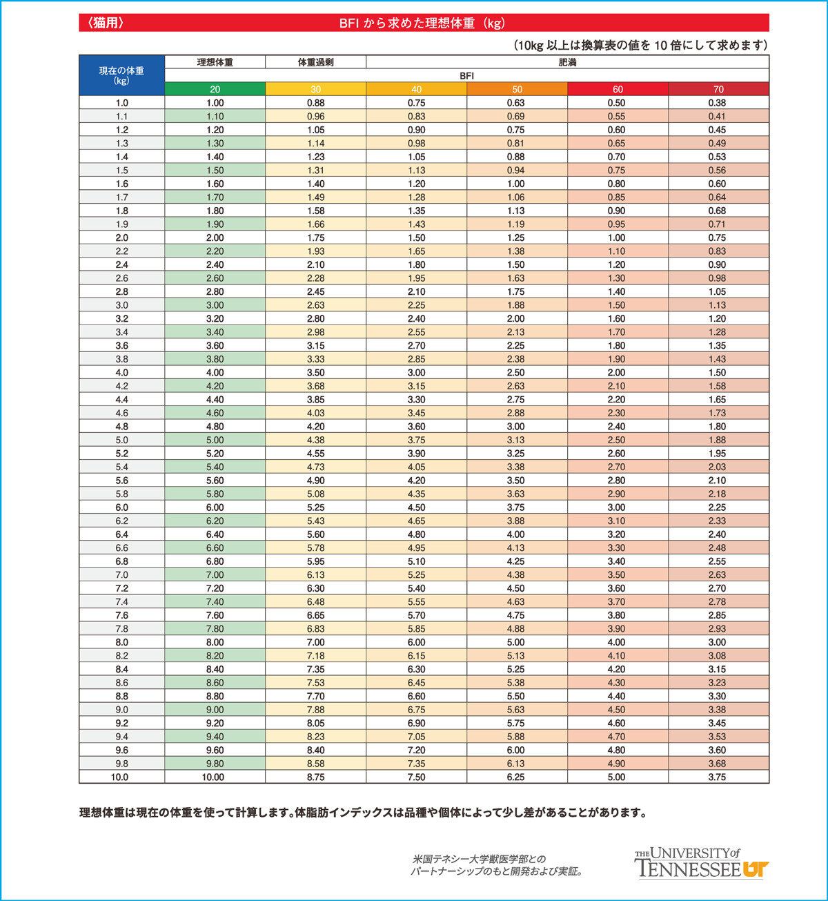 (例)現在体重5kg、BFI 40の愛猫の理想体重は3.75kg