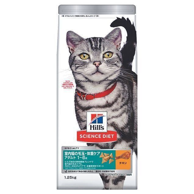 ヒルズ独自の食物繊維ブレンドで毛玉ケアと、カロリー約24%オフ※で運動量が少ない室内猫の体重管理をサポート。