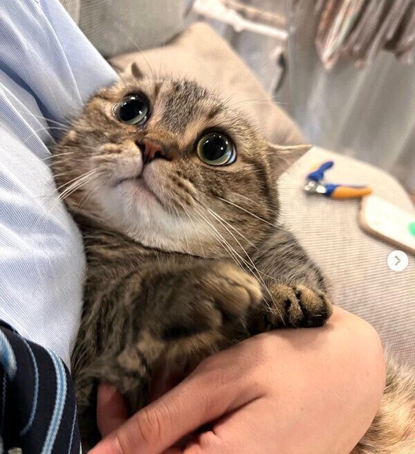 大きな目をまんまるにしながら見つめるまるくんの愛くるしい姿をおさめた写真には、「お姉ちゃん大好きなのね お目目キラキラ」「お目々まん丸で凄く可愛いですね」「愛くるしい眼差しですね」「破壊力抜群過ぎる」などと反響のコメントが。また、69.3万件以上の「いいね」がつくなど、Instagramで大きな話題となっていました。