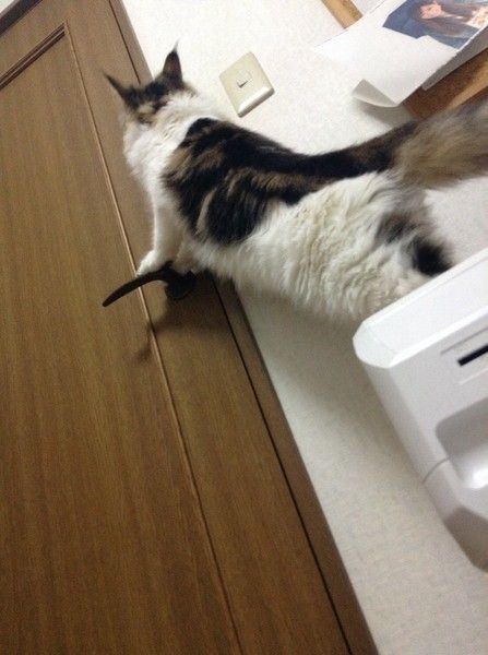 すこーし開いているドアを、なんとかこじ開けて入ってきた愛猫。その様子を見ていた飼い主さんは「スゴイ!こんなに頭がいいなんて!」と愛猫をベタ褒めします。それ以降、ドアを自分でこじ開けて入ってくるようになったそうです。