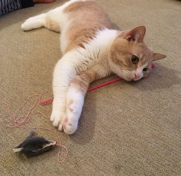 猫も人間と同じで、あまり動かないでいると便秘になりやすくなります。愛猫があまり動かないタイプであれば飼い主さんから遊びに誘って、1日5分でも良いので運動する機会を作ってあげてください。