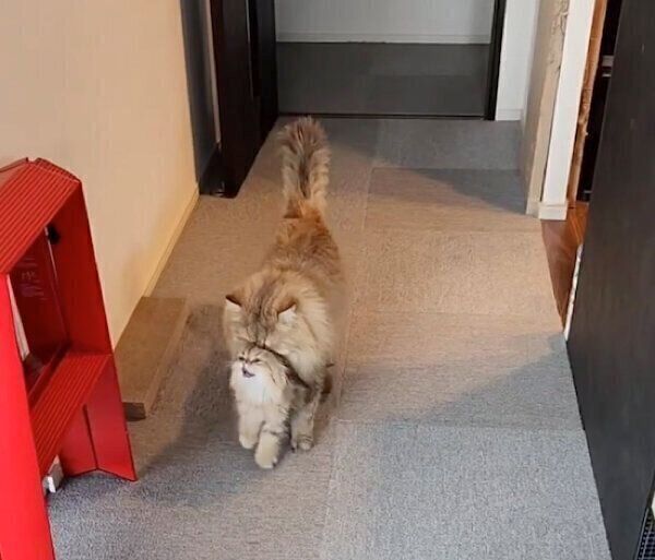 飼い主さんは「寝室に行ってしまう鹿の子ちゃんを見つけては連れ戻す」を繰り返していたそうですが、そのうち先住猫・海松茶(みるちゃ)くん(撮影時5才10カ月)が鹿の子ちゃんを連れ戻してくれるようになったのだそうです。