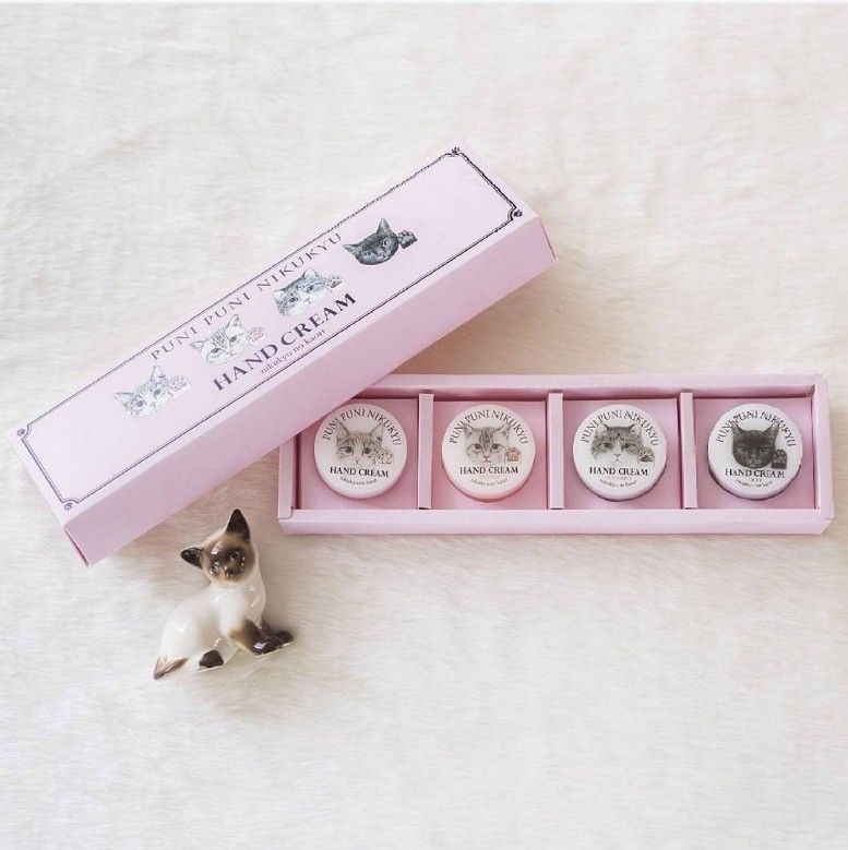 フェリシモで購入できる「肉球の香り」のするハンドクリームは、「ポップコーンの香り」をベースに調合し、肉球の香りを再現しています。肉球カラーを再現した4色がミニサイズのセットになっていて、猫好きの方にプレゼントすれば喜ばれること間違い無し!大人びたパッケージデザインも素敵ですね。