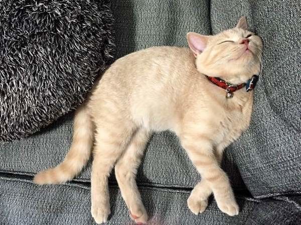 歩いているの…?いいえ、寝ているんです。ブリティッシュショートヘアのシャーロック君は、今にも歩き出しそうな格好で気持ちよさそうに眠っています。長い手足と上品な毛並みからは想像もつかないお茶目な寝姿に、ほっこりとしてしまいそうですね。