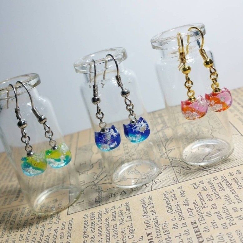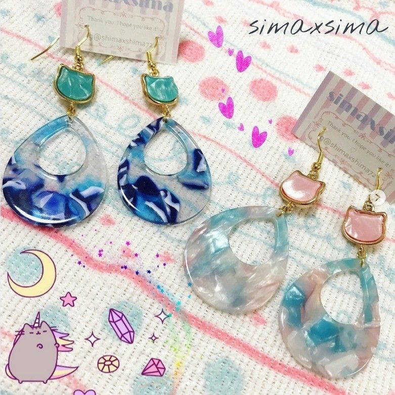こちらの猫ピアスは、@manamu0007さんがハンドメイドして販売しているのだそう。クリアな樹脂でできた猫の中には花火が描かれており、とっても夏らしいデザインに仕上がっていますね。