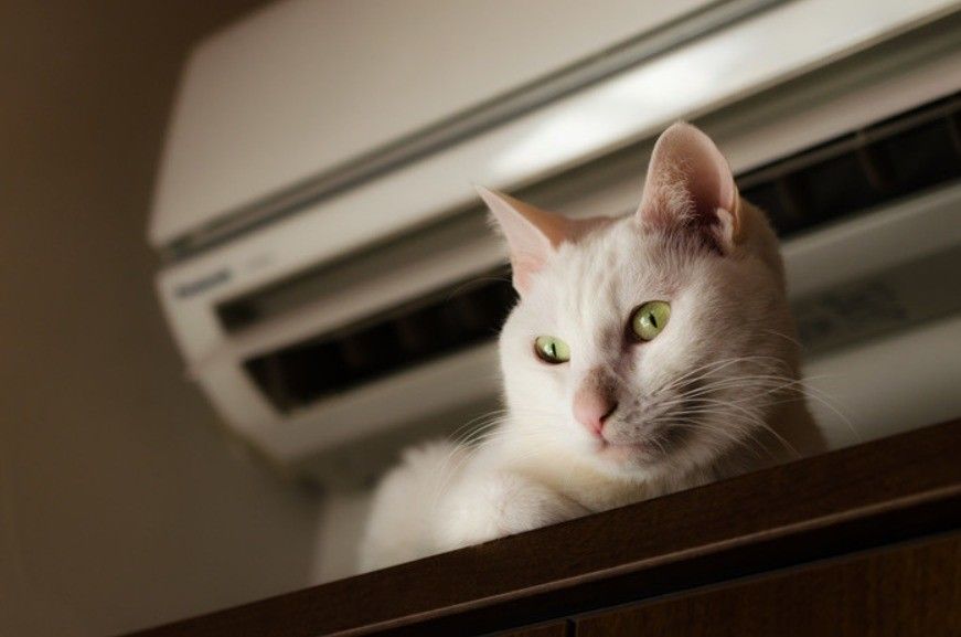 猫は体温を下げるために、舌から唾液を蒸発させますが、湿度が高いと蒸発しにくくなってしまいます。熱中症予防のためにも、夏場はクーラーで温度や湿度を調節しましょう。また、外出する際は28℃くらいを保てるように設定し、万が一留守中にクーラーが切れても問題ないように、部屋は締め切らず扉を開けておきましょう。