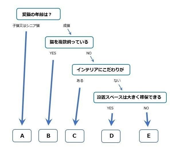 では、愛猫に合ったキャットタワーを選んでいきましょう。チャートに沿って出た答え別におすすめのキャットタワーをご紹介します。