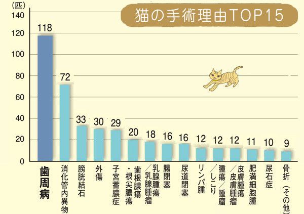 データを見て気付くのは、腫瘍(しゅよう)・腫瘤(しゅりゅう)を除く手術理由のほとんどは、飼い主さんのケアや配慮で予防が可能だということです。