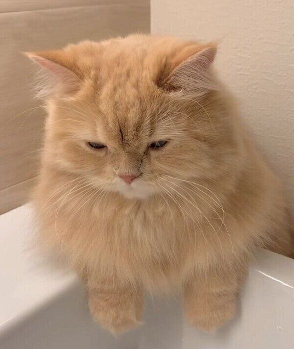 目をしょぼしょぼさせながら、飼い主の歯磨きが終わるのを待つ猫 行動からわかる心理は?|獣医師解説