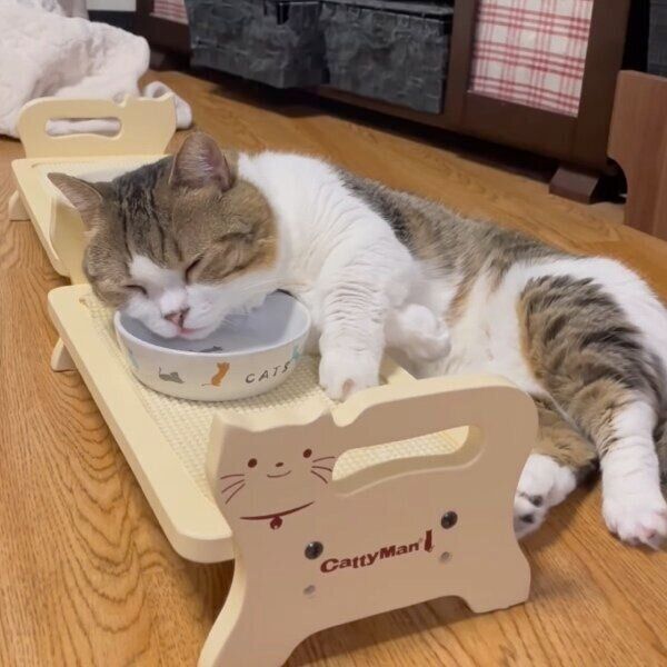 【獣医師解説】夜食を待っているときに、フードボウルを枕にして「寝落ち」する猫の心理